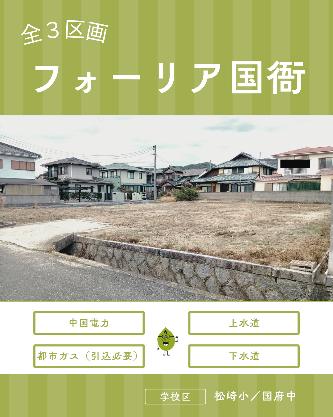 - 電気=中国電力 水道=上水道 排水=下水道 ガス=プロパンガス